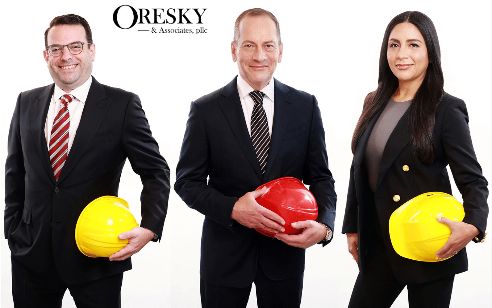 THE EXECUTION: Lev photographed Joseph Oresky, founder/owner, and his office manager Lucia, at a Brooklyn construction site to relate his extraordinary track record of winning cases for injured construction workers. Lev created high-contrast, dramatic lighting to express their commitment. For the rest of the Oresky Team, Lev shot on a white background to communicate the team’s no-nonsense approach to delivering winning results for personal injury cases. Lev coached each person individually to bring out the perfect combination of warmth and confidence for the camera.